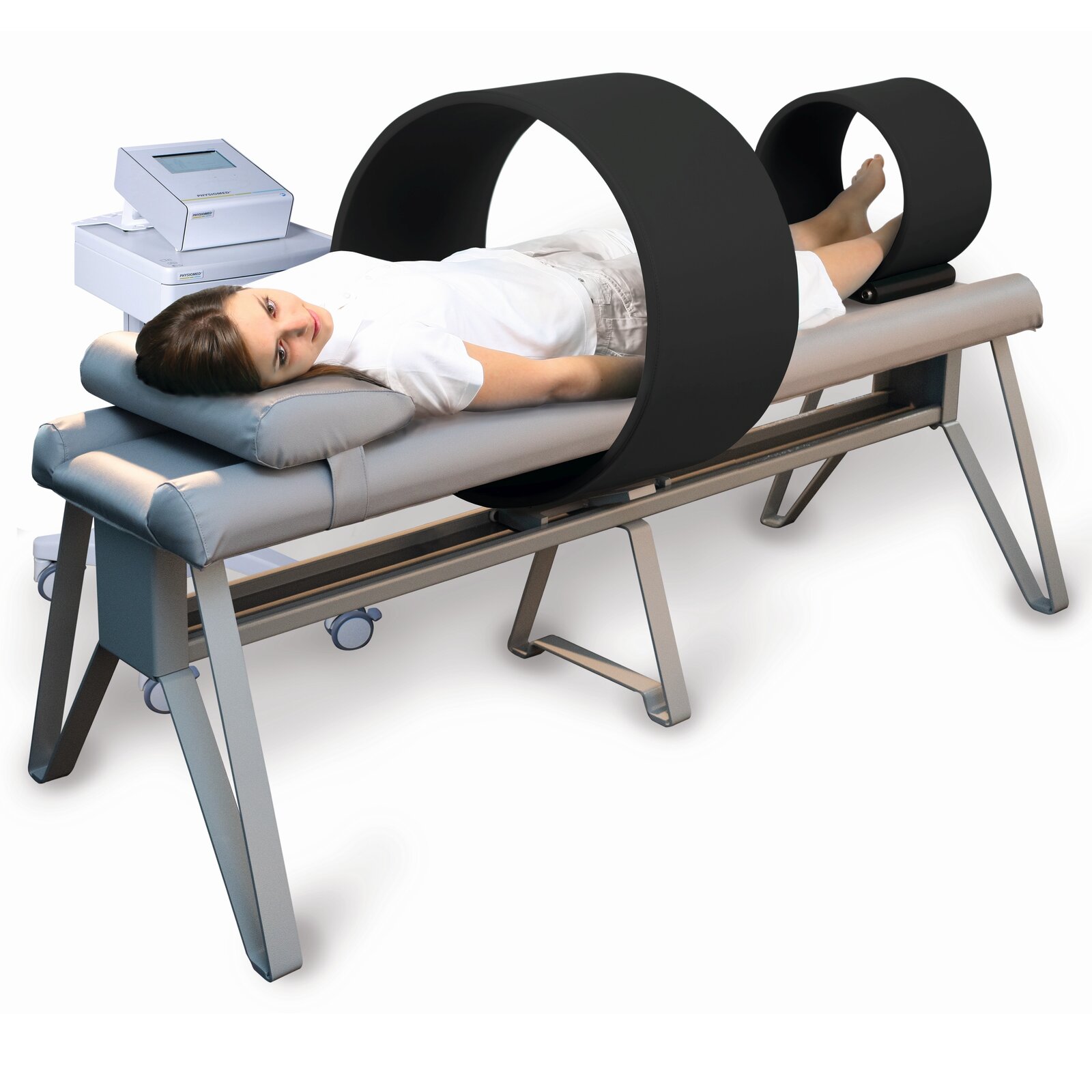 Große Spule für die Magnetfeldtherapie der Wirbelsäule, des Beckens und des ganzen Körpers, mit einzigartiger MFC-Technologie zur Fokussierung der Magnetfelder auf die Behandlungsregion - die magnetische Induktion die außerhalb der Spule entsteht, wird auf ein Minimum reduziert.